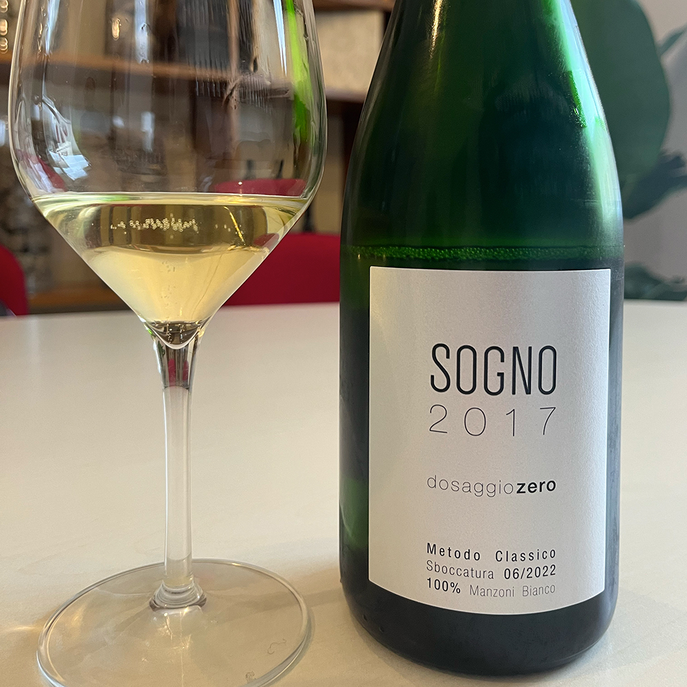 Sogno: un incrocio Manzoni 6.0.13 Metodo Classico dosaggio zero con permanenza di 48 mesi sui lieviti (o 72 mesi nel caso della riserva).