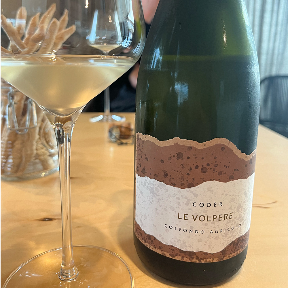 Matteo ci chiede come vogliamo assaggiarlo, sì perchè il “col fondo” puoi decidere se provarlo limpido, decantando quindi il vino in una caraffa lasciando il sedimento di lievito in bottiglia ed apprezzarne le note puramente evolutive-varietali o velato, agitando la bottiglia, il deposito di lieviti viene rimesso in sospensione per poter apprezzare maggiormente quei sentori tipici dati dal lievito stesso. Una scelta che ricade quasi spontaneamente sulla seconda opzione, ecco che ci troviamo quindi davanti ad un calice che si presenta velato dove i sentori di lievito sono i primi a farsi strada lasciando spazio solo in un secondo momento, e neanche troppo velocemente, alla frutta molto matura. Un vino deciso, secco e dalla prolungata persistenza.